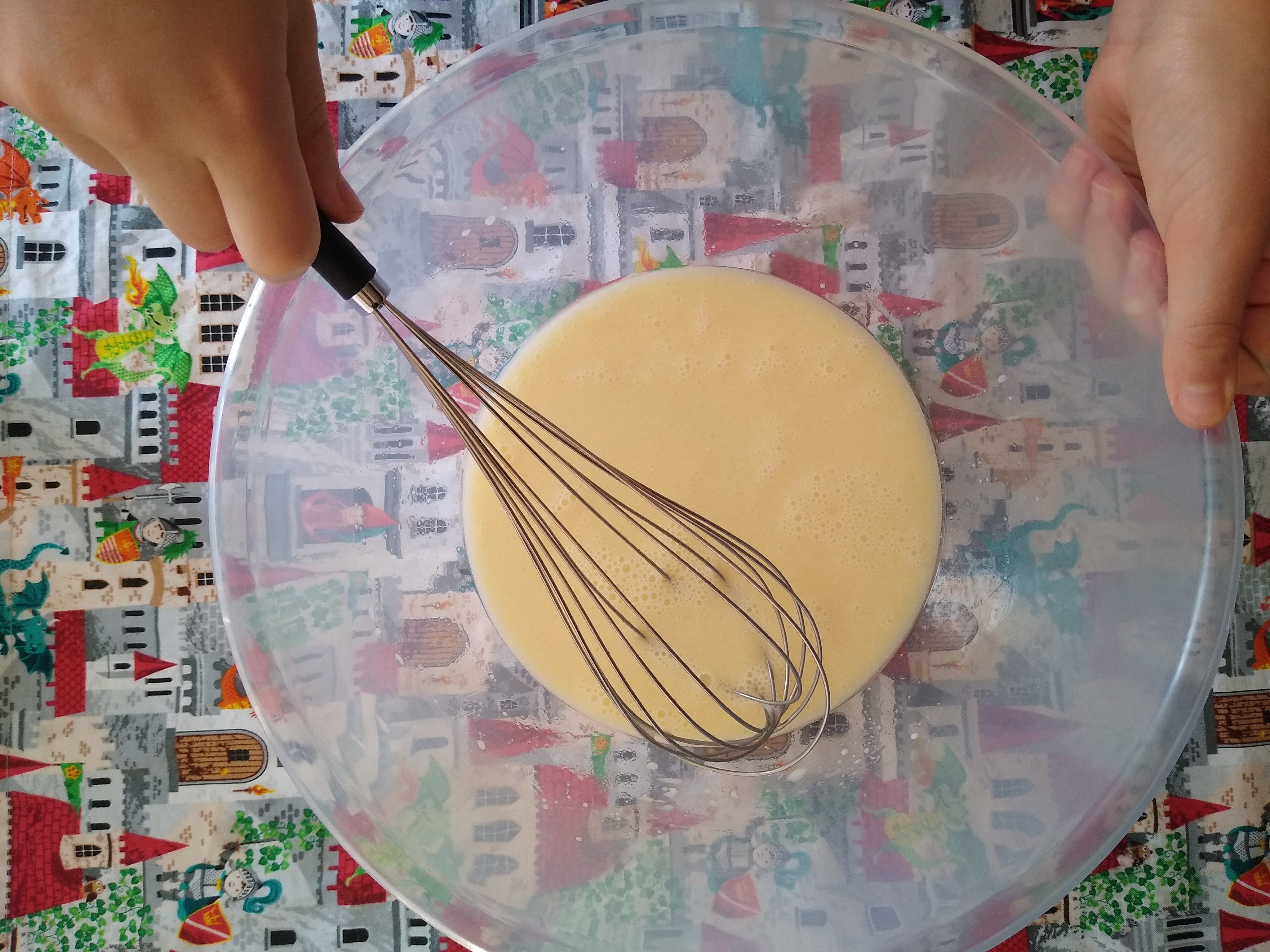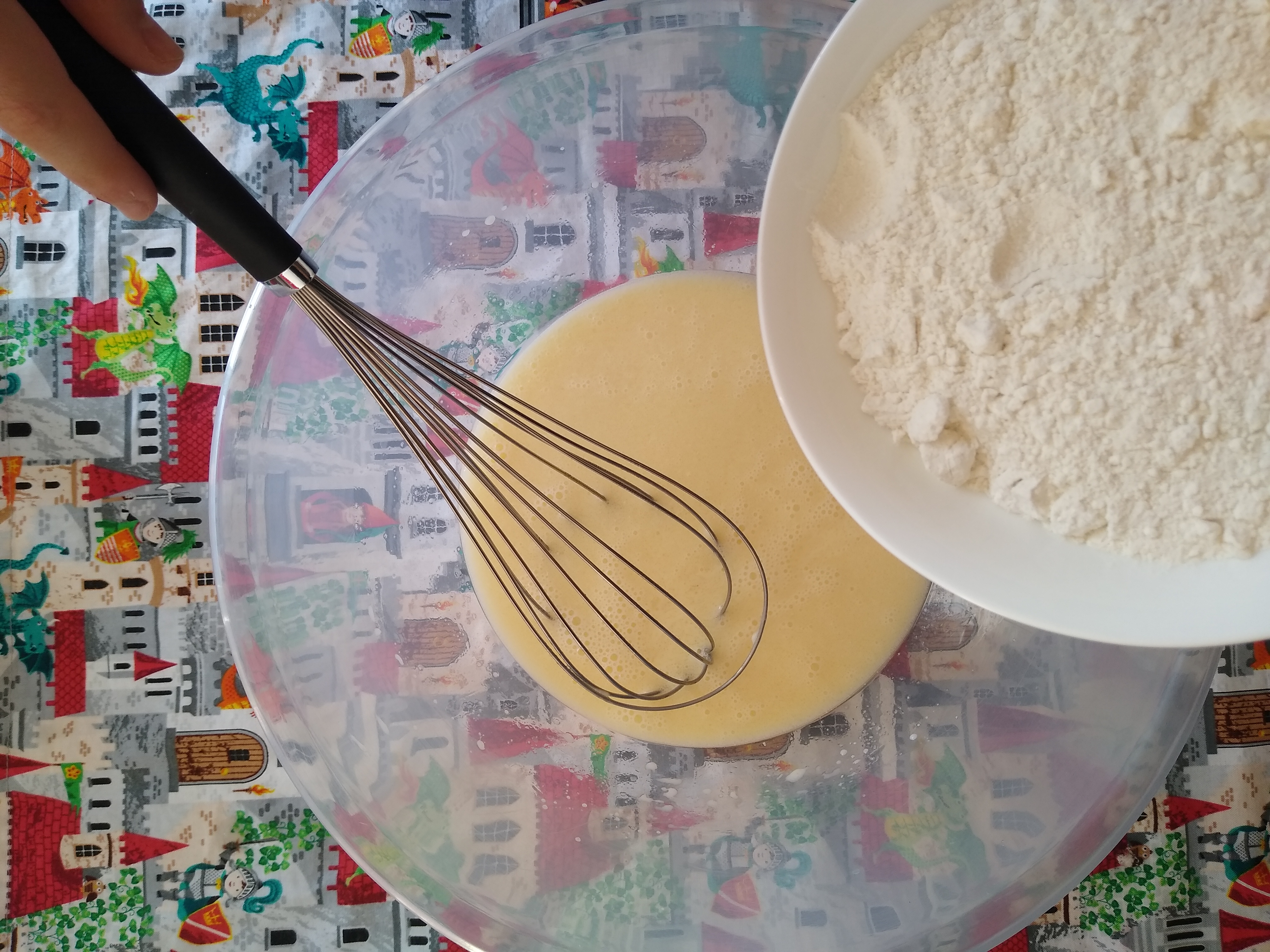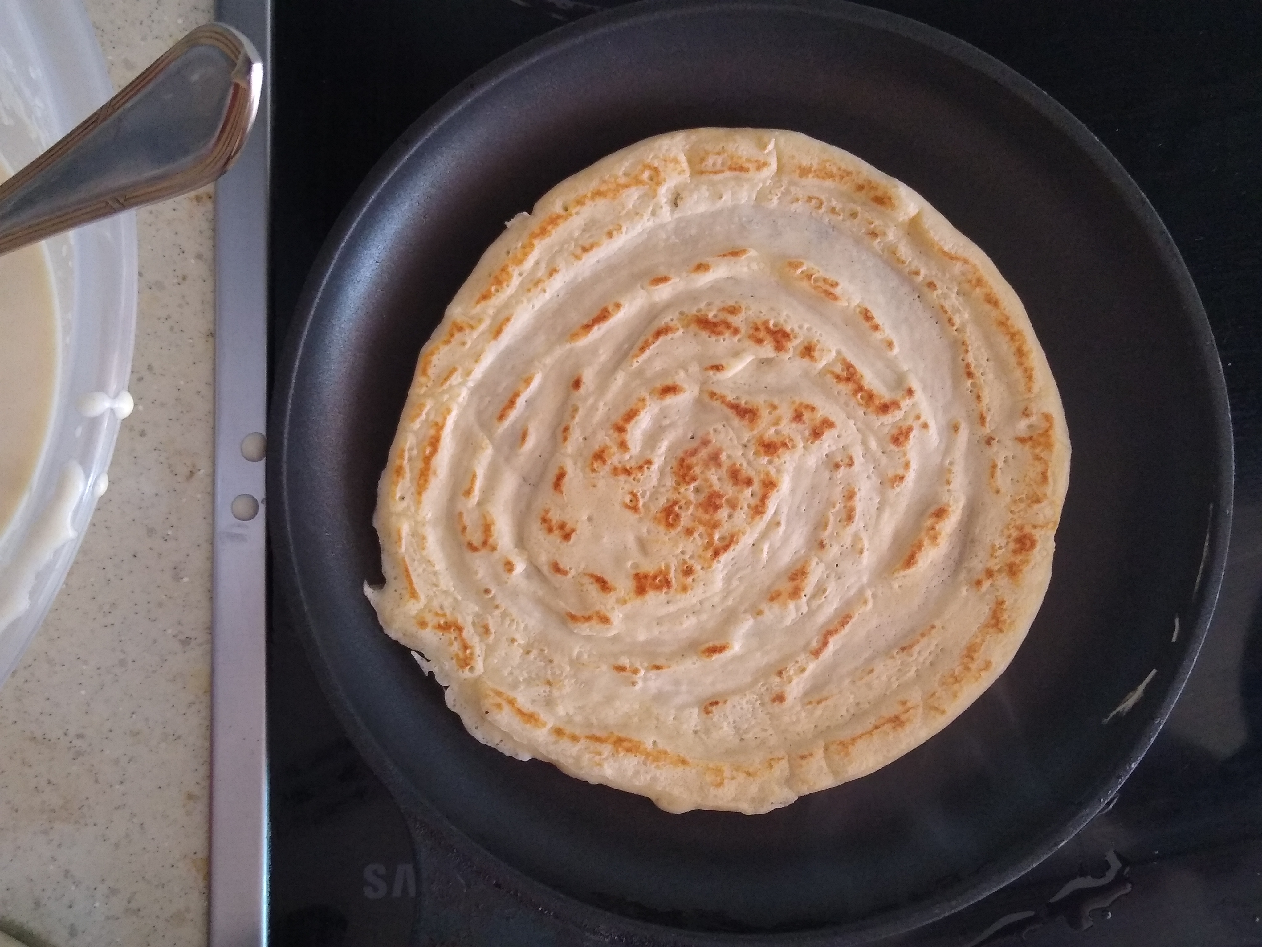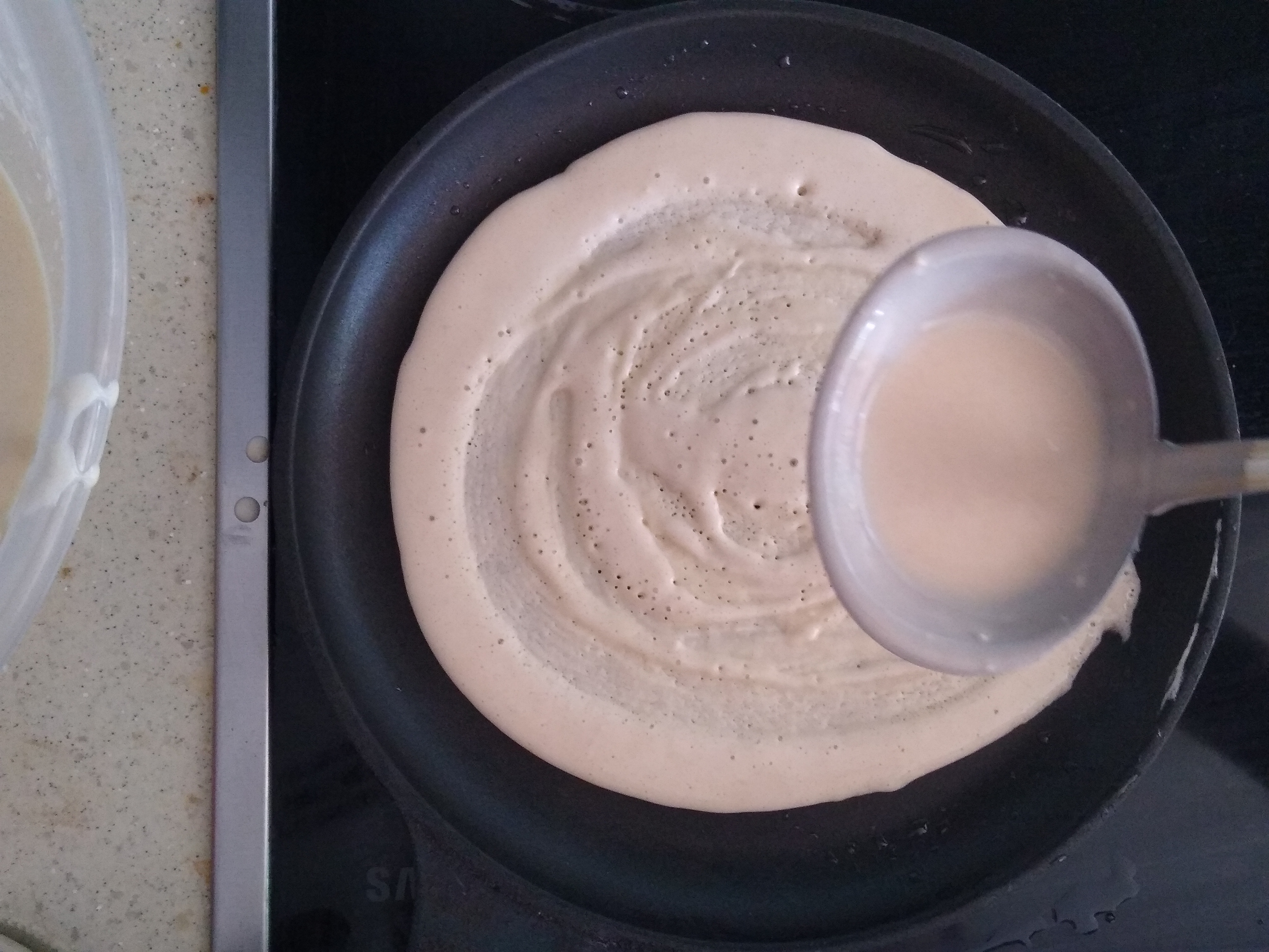 3. Take some pancake mix and with the bottom of your ladle spread it out